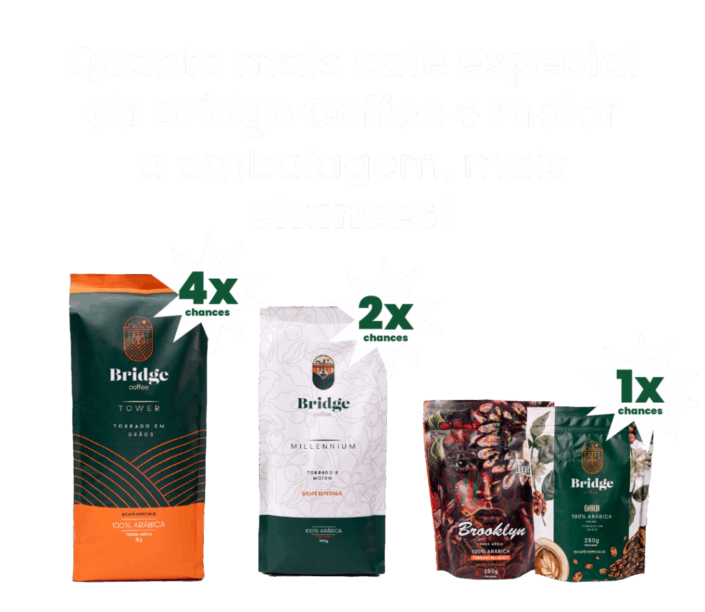 Observações: Informações digitadas de forma incorreta ou com erros não serão consideradas válidas e serão sujeitas a alteração. A Bridge Coffee reserva-se o direito de realizar ajustes ou modificações neste regulamento a qualquer momento sem aviso prévio, bem como encerrar a promoção, sem que isso gere obrigações ou compensações adicionais à empresa.